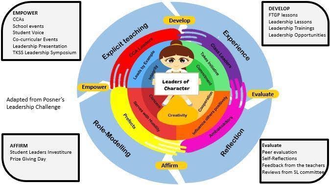 This circle represents authentic leadership roles such as CCA Leaders, Class Leaders, Ambassadors, and Prefects, giving students real opportunities to lead.