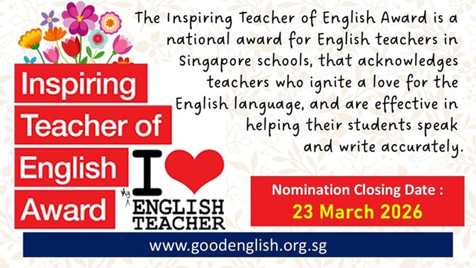 Nominate your English Language teachers now by submitting the nomination form at https://go.gov.sg/iteahgs2026.